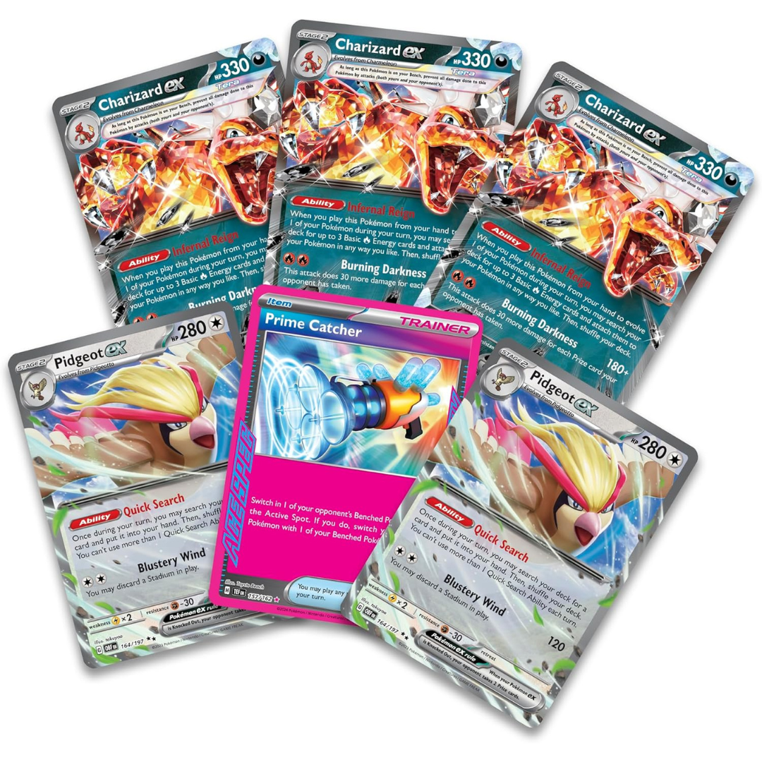 Ready to bear the infernal power of the Darkness type? Evolve your gameplay with this ready-to-play deck featuring Charizard ex—one of the most dominant Pokémon ex in the Pokémon TCG. You’ll not only receive the classic Flame Pokémon, you also get plenty of powerful cards that include Arven, Buddy-Buddy Poffin, Pidgeot ex, and the highly sought-after ACE SPEC card: Prime Catcher. The Charizard ex League Battle Deck puts together all these elements to support you in your next match against friends and neighbors, in person or online!