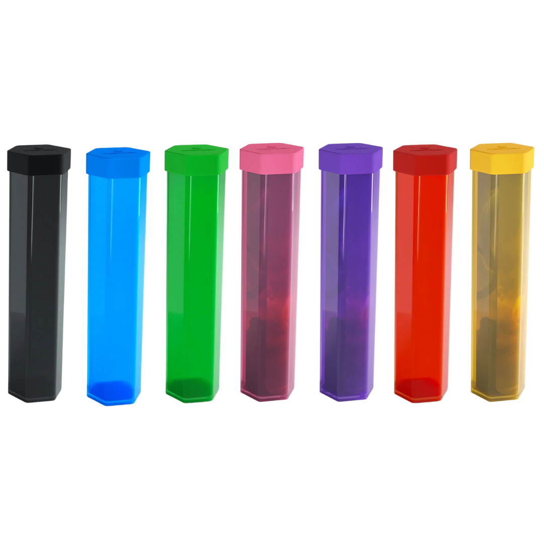 Keep your playmats organized and protected. The Playmat Tube provides a secure storage solution for stitched and unstitched playmats in vibrant, semi-transparent colors. A hexagonal shape keeps the tube from rolling around on the table. The cap is made out of a flexible material and can be easily taken off, whilst still creating a tight seal to prevent the playmat from falling out accidentally, even when shaken.