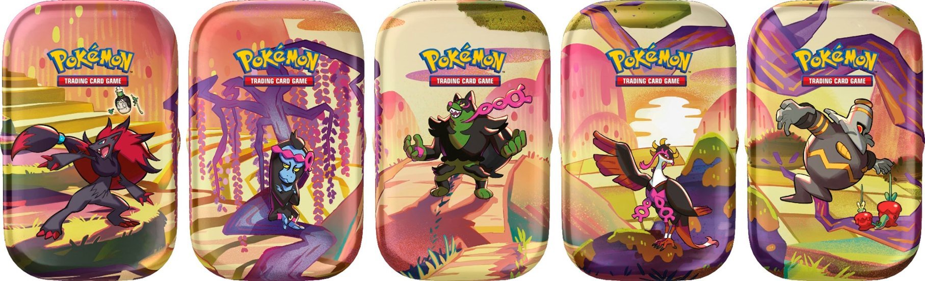 A Pokémon art card showing the art from this Mini Tin—you can collect and combine all 5!