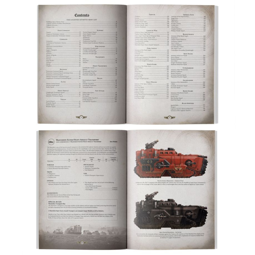– Rules and unit profiles: A guide to army building, plus rules for units, weapons, and Wargear available to the Loyalist Legiones Astartes in Warhammer: The Horus Heresy.